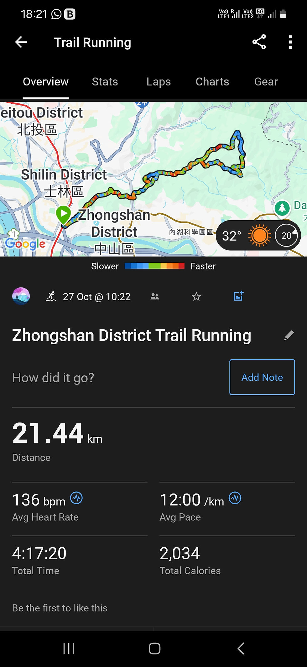 This week start with nice 21km trail run with 1100m of elevation and weather was great. I went to the trail that is next to my door Taipei Grand Trail Section 5. I did not feel that well once started and did not want to go too far.